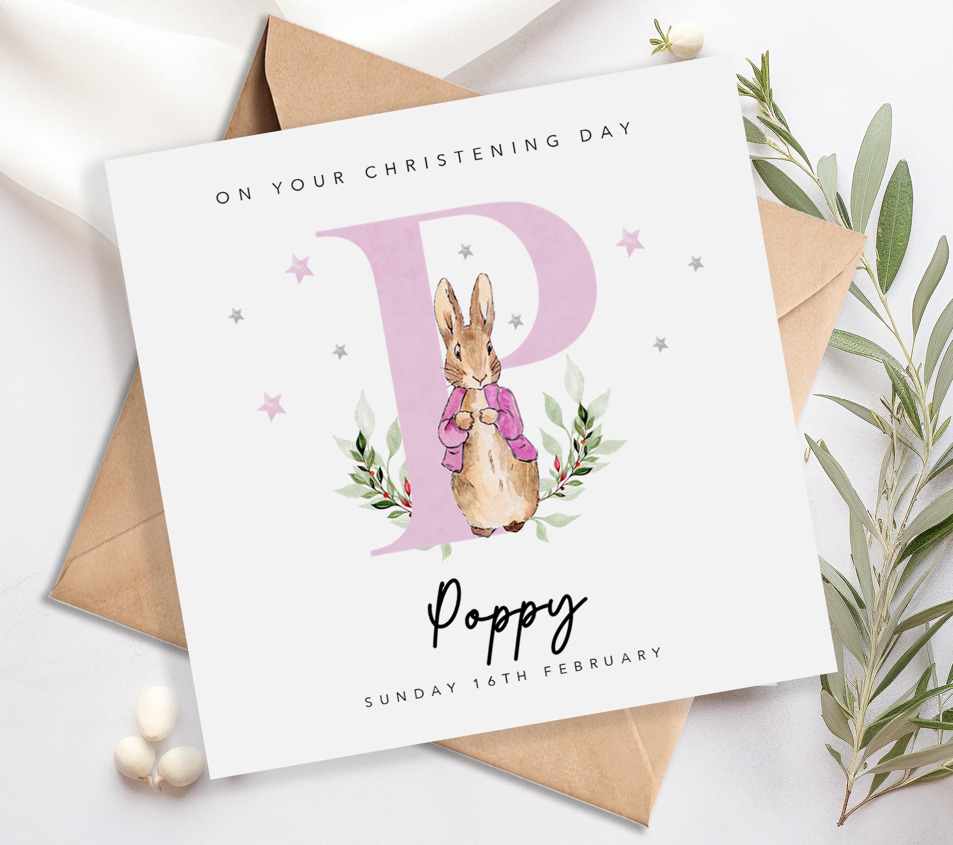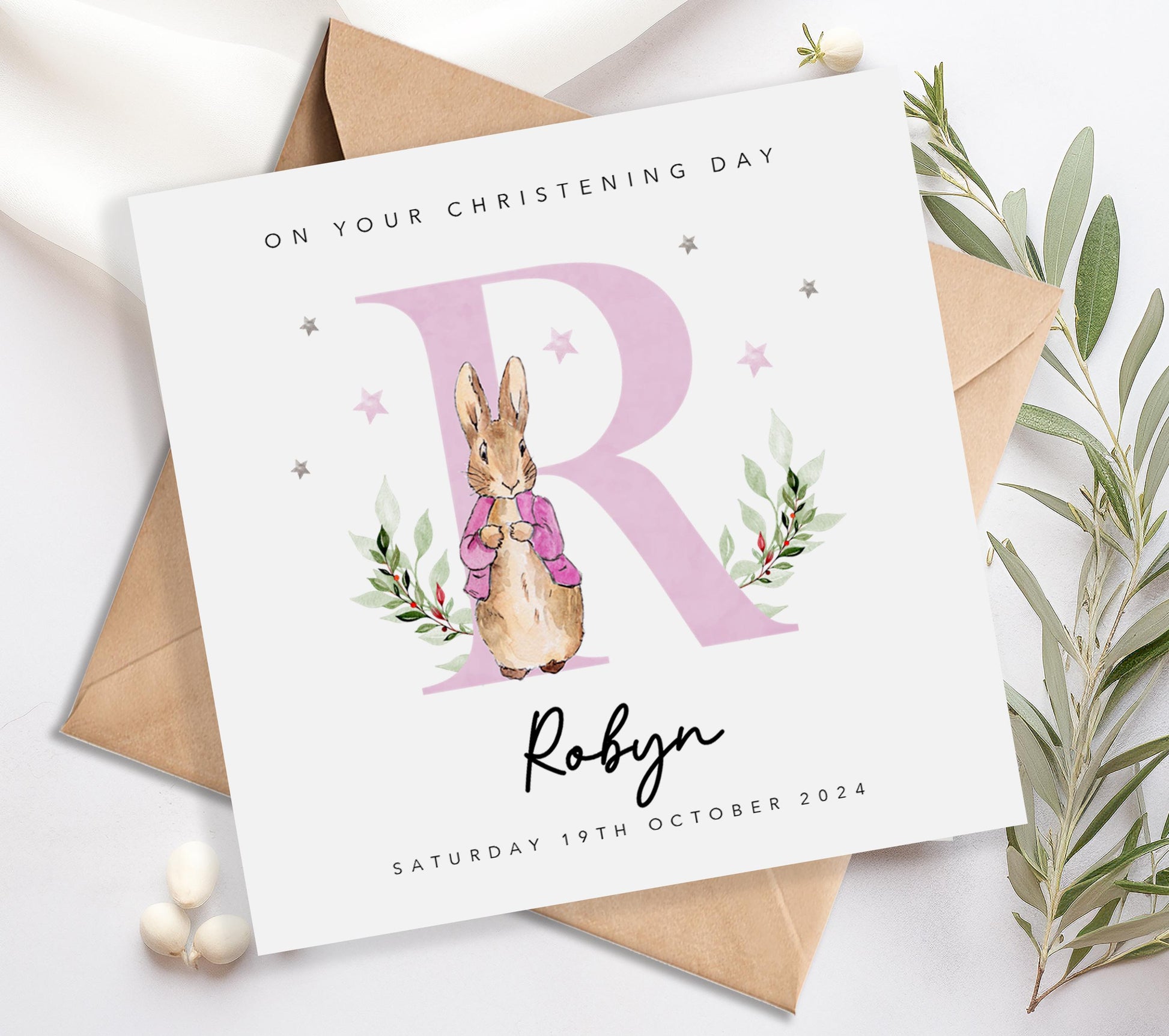 Pink Initial Christening Card